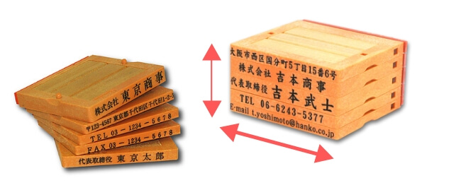 楽天市場 プッシュオフ 2枚 組み合せ印 親子印 ゴム印 印鑑 スタンプ 会社印 社判 オリジナル 組合わせ 自由 オーダー 横判 住所 名前 社名 5 サイズ 笑印堂