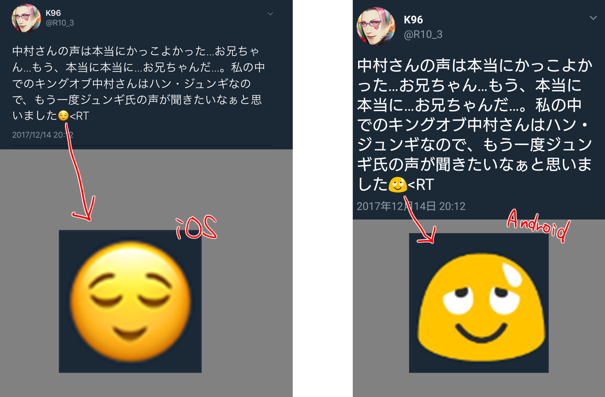 ほっこり系絵文字と思ったら Iosとandroidで全然見え方が違う件 話題の画像プラス
