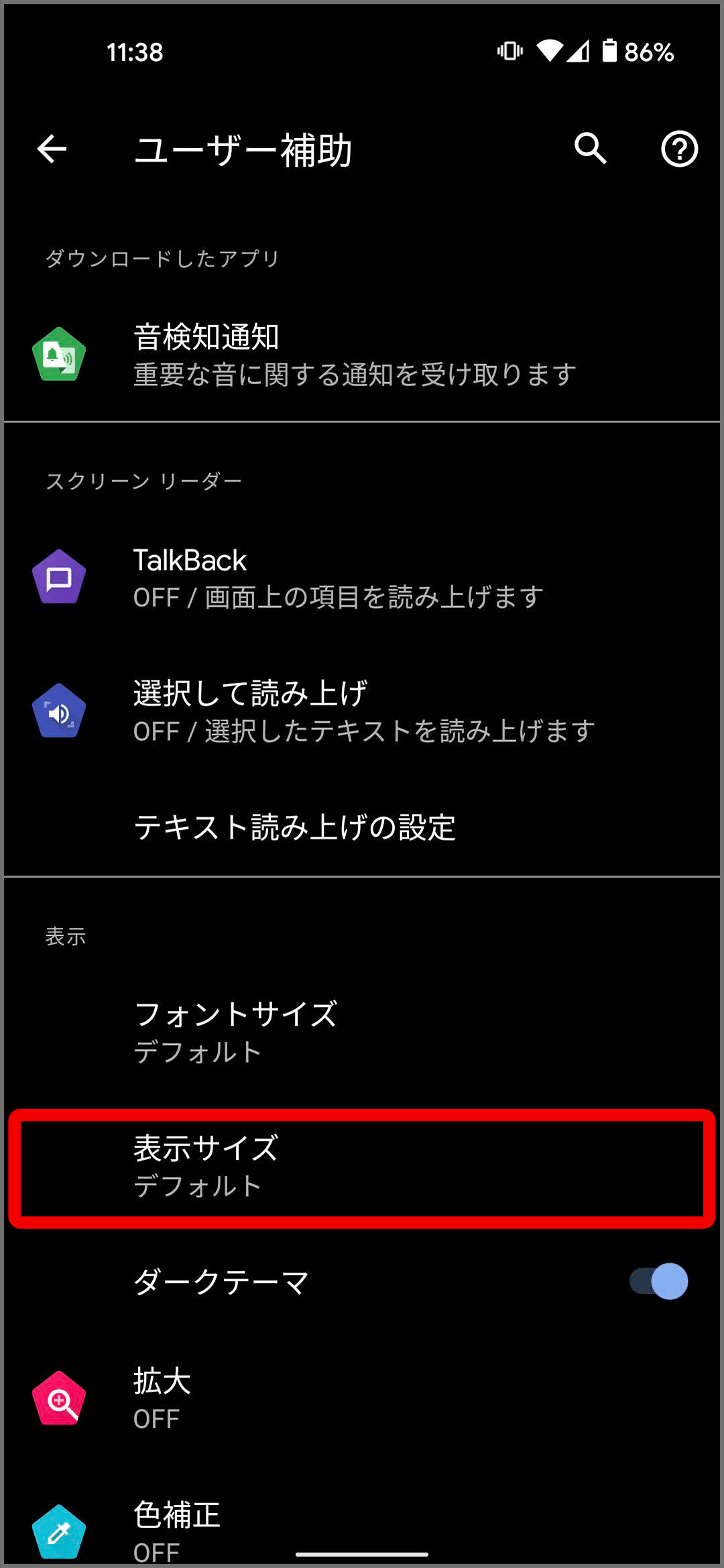 フォントサイズと表示サイズ Android のユーザー補助機能 ヘルプ