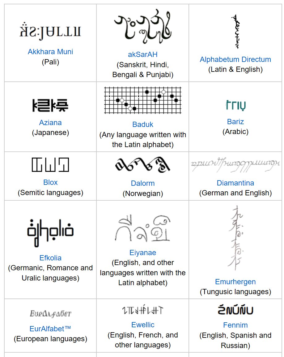 世界の文字bot Twitterissa 人工文字 人工言語のために作られた文字 自然言語のために 半ば 人工言語的な 趣味的に作られた文字 Https T Co D9hw8frjcl Https T Co Spxxmktjvm