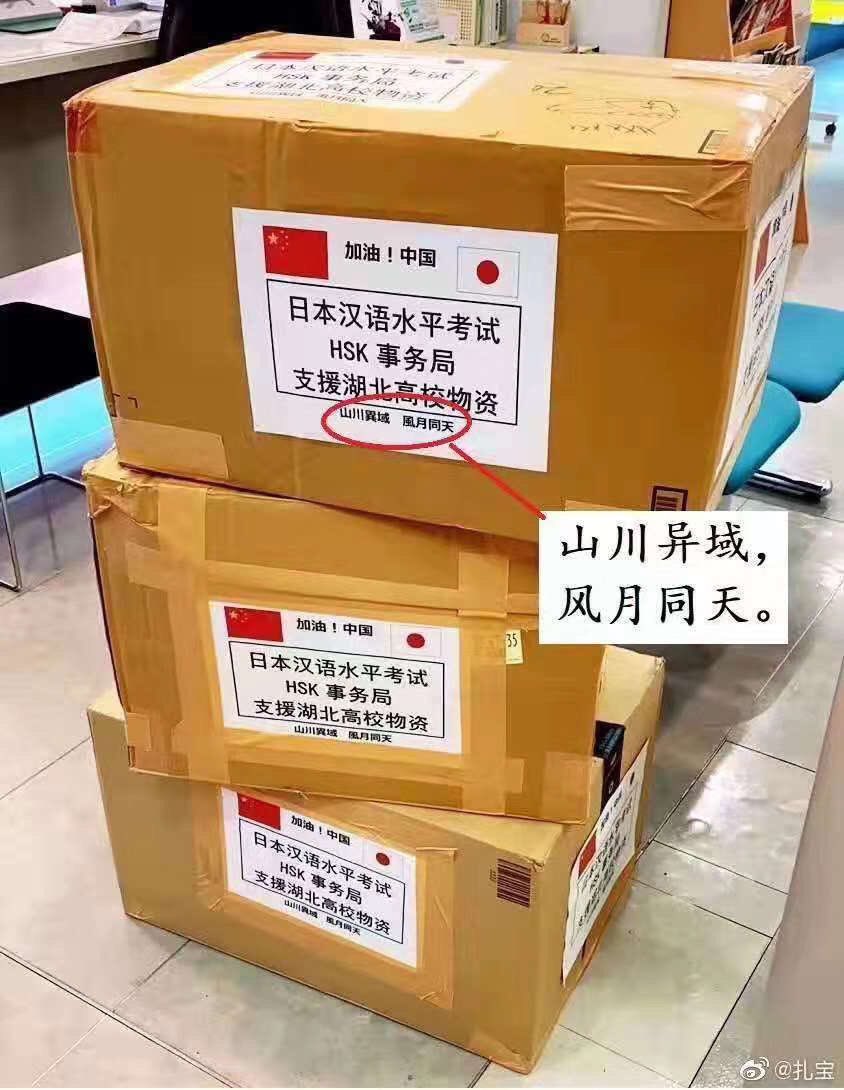日本からの支援物資に貼られた8文字が中国で話題に 山川異域 風月同天 山河は違えど同じ風が吹き同じ月を見る Togetter