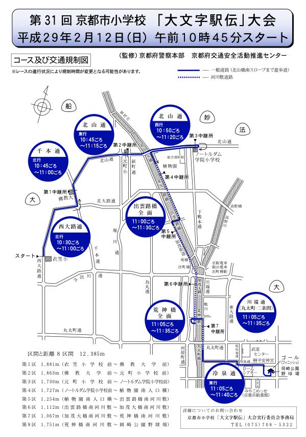 学生防災サークル 立命館fast 公式 Twitterren 12日 日 実施 京都市小学校大文字駅伝による臨時交通規制のお知らせ 12日 日 10時30分から11時40分頃まで京都市内の各地で京都市小学校大文字駅伝による臨時交通規制が実施されます 参考 京都市