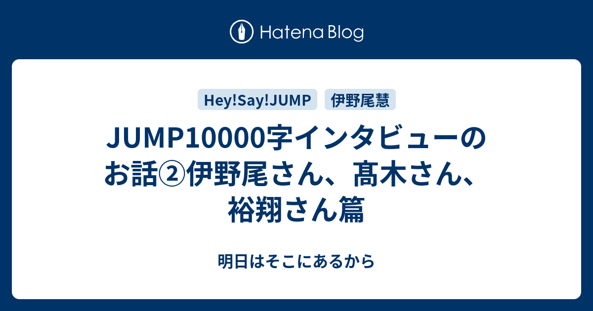 Jump10000字インタビューのお話 伊野尾さん 髙木さん 裕翔さん篇 明日はそこにあるから