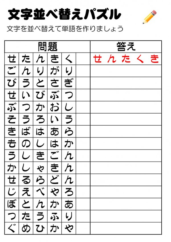 レク素材 言葉並び替えゲーム 介護レク広場 レク素材やレクネタ 企画書 の無料ダウンロード